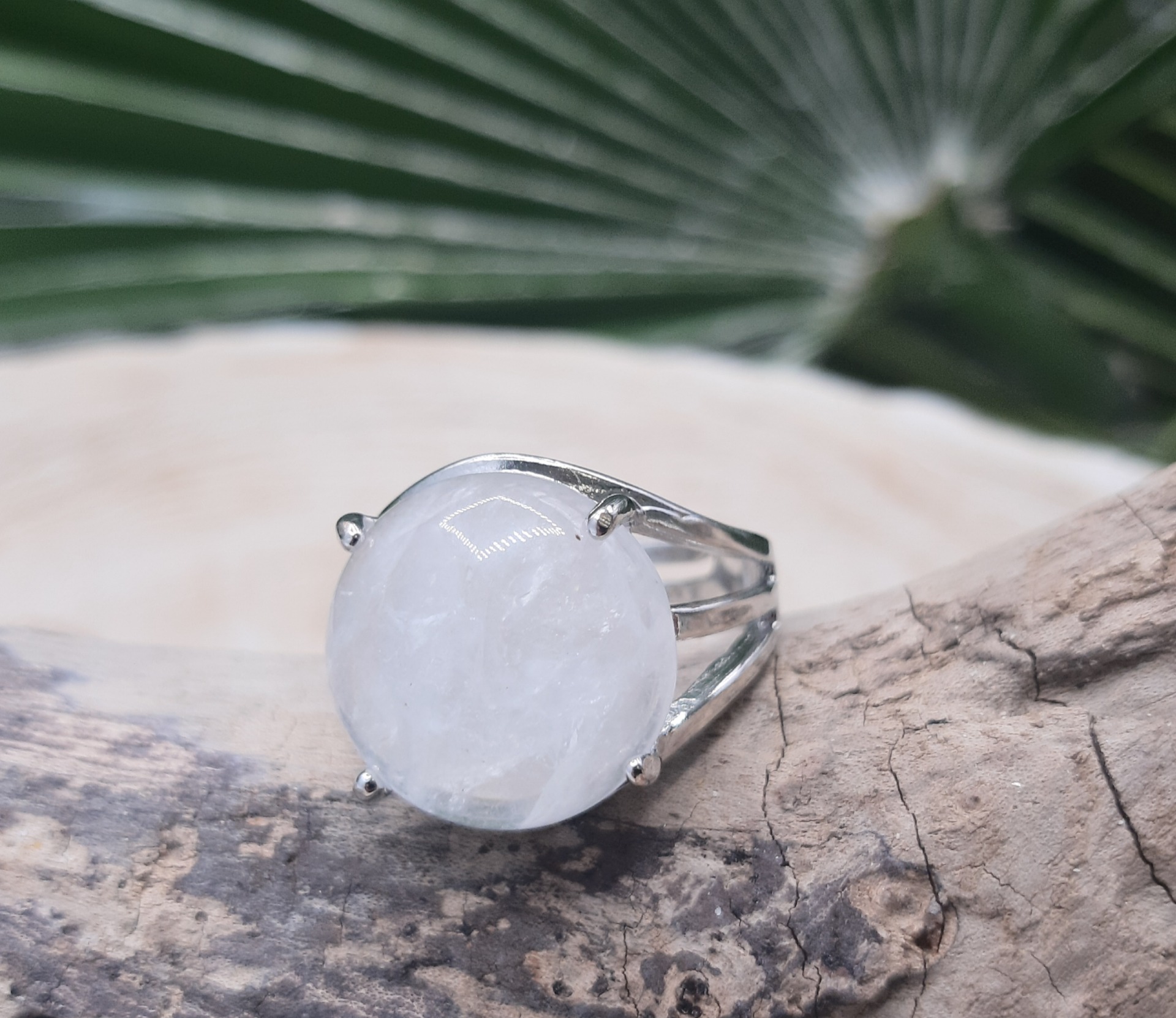 Bague en pierre de Lune et acier inoxydable